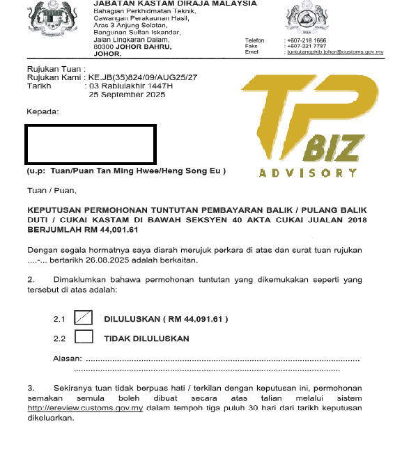 Based on Malaysia Customs annual reports, more than 30% of eligible SMEs never submitted SST refund claims, leaving significant money unclaimed. Accounting firms like TP Biz Advisory can help identify these opportunities.